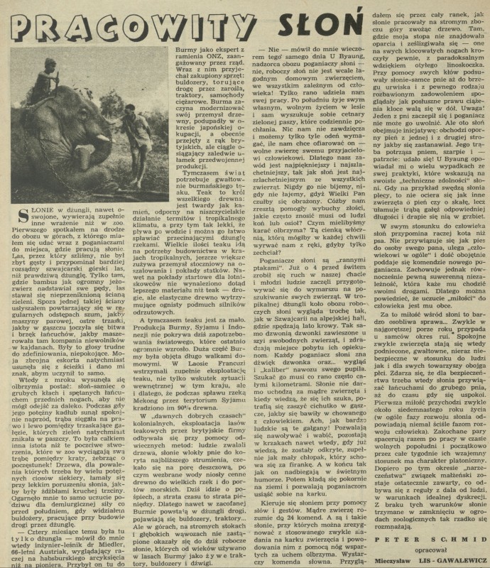 Archiwum / Artykuł nr 527 (20/1955) 2/9 Podziel się Tytuł Pracowity słoń Autor Peter Schmidt Mieczysław Lis Gawalewicz Kategoria Artykuł Artykuł z numeru 527 (20/1955) Data wydania 15 maja 1955 Tagi dżungla poganiacze Mjanma Birma Burma