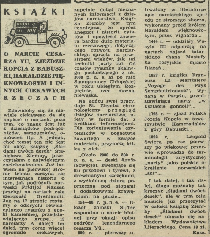 Archiwum / Książki nr 527 (20/1955) 7/9 Podziel się Tytuł O narcie cesarza Yu, zjeździe kopcia z Babuszki, Haraldzie Pięknowłosym i innych ciekawych rzeczach Autor Kasz. Rubryka Książki Artykuł z numeru 527 (20/1955) Data wydania 15 maja 1955