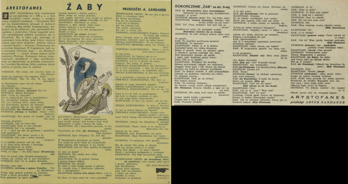 Archiwum / Proza nr 531 (24/1955) 1086/2409 Podziel się Tytuł Żaby Autor Arystofanes Artur Sandauer Kategoria Proza Artykuł z numeru 531 (24/1955) Data wydania 12 czerwca 1955 Tagi komedia teatr starogrecki Dionizos