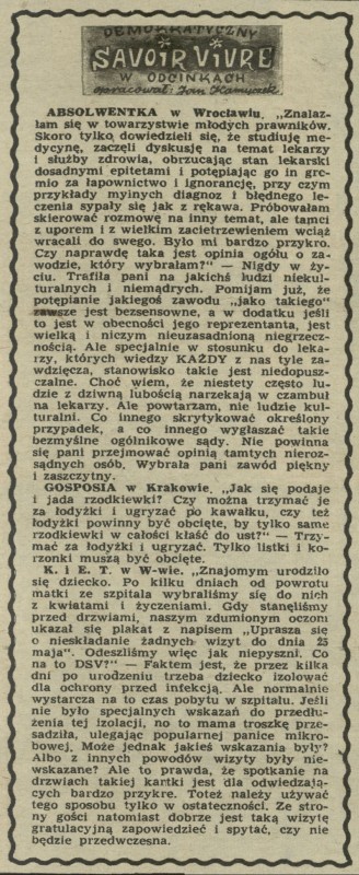 Archiwum / Demokratyczny savoir-vivre nr 531 (24/1955) 271/493 Podziel się Tytuł Demokratyczny savoir-vivre Autor Jan Kamyczek Rubryka Demokratyczny savoir-vivre Artykuł z numeru 531 (24/1955) Data wydania 12 czerwca 1955 Tagi obyczaje kultura