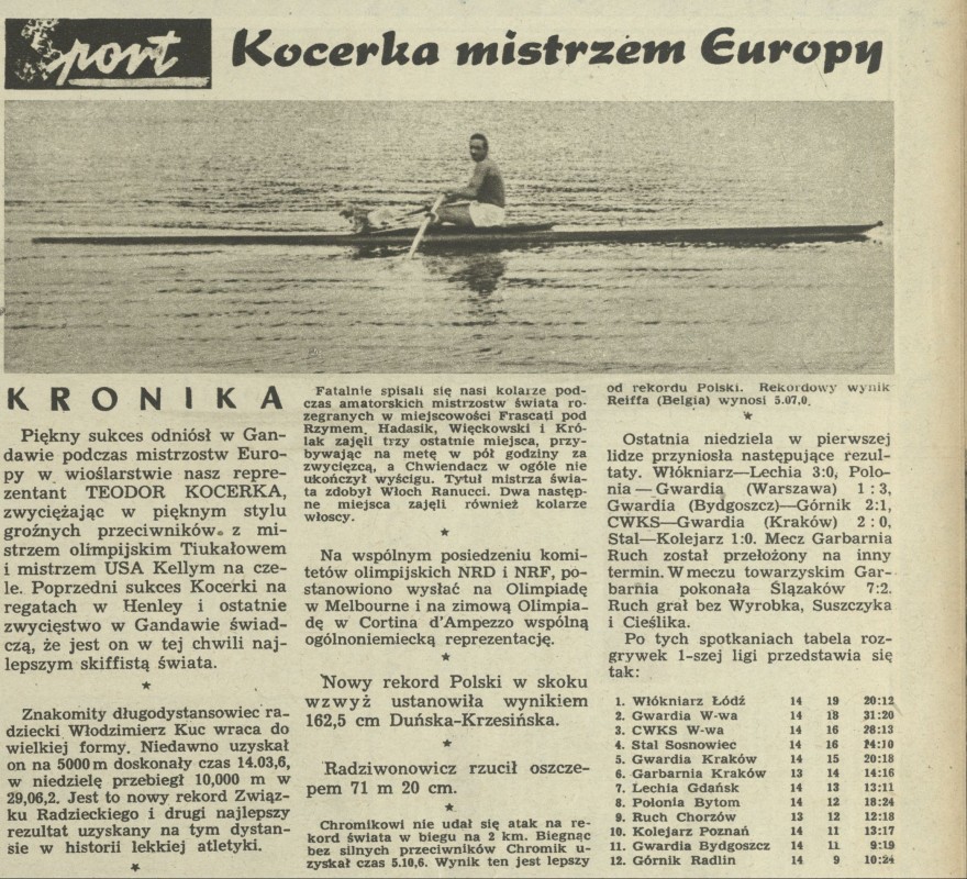 Archiwum / Kronika (sportowa) nr 543 (36/1955) 164/1225 Podziel się Tytuł Kocerka mistrzem Europy Rubryka Kronika (sportowa) Artykuł z numeru 543 (36/1955) Data wydania 4 września 1955 Tagi rekord wioślarstwo