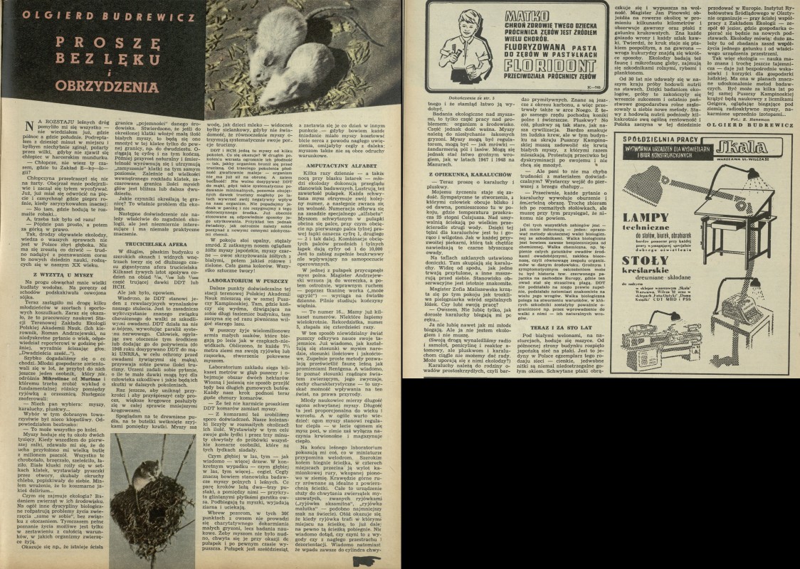 Archiwum / Artykuł nr 546 (39/1955) 2/4 Podziel się Tytuł Proszę bez lęku i obrzydzenia Autor Olgierd Budrewicz Kategoria Artykuł Artykuł z numeru 546 (39/1955) Data wydania 25 września 1955 Tagi myszy gryzonie badania ekologiczne karaluchy