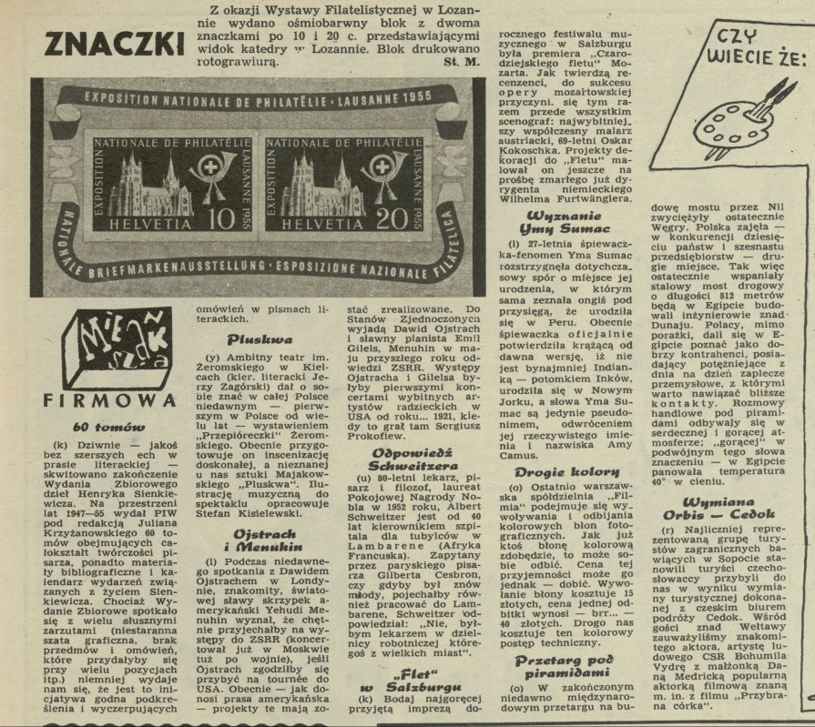Archiwum / Mieszanka firmowa nr 546 (39/1955) 128/189 Podziel się Tytuł Mieszanka firmowa Rubryka Mieszanka firmowa Artykuł z numeru 546 (39/1955) Data wydania 25 września 1955