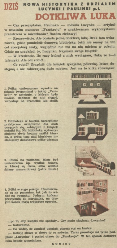 Archiwum / Dziś Lucynka i Paulinka nr 388 (37/1952) 02/15 Podziel się Tytuł Dotkliwa luka Autor Lucynka i Paulinka Rubryka Dziś Lucynka i Paulinka Artykuł z numeru 388 (37/1952) Data wydania 14 września 1952 Tagi domowa biblioteka mieszkanie półka książki