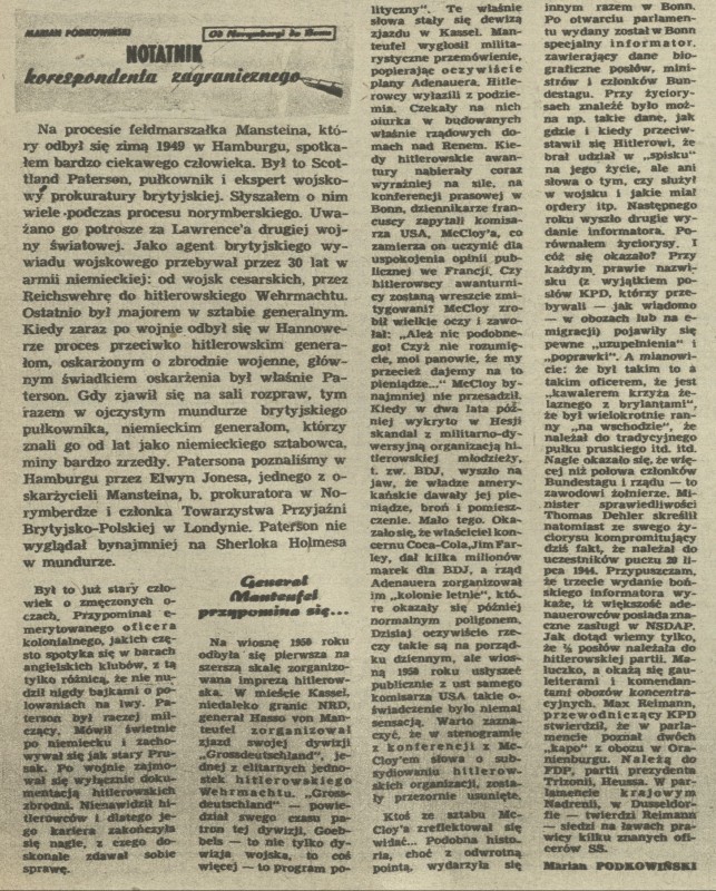 Archiwum / korespondencja własna "Przekroju" nr 423 (20/1953) 111/157 Podziel się Tytuł Od Norymbergi do Bonn. Notatnik korespondenta zagranicznego Autor Marian Podkowiński Rubryka korespondencja własna "Przekroju" Artykuł z numeru 423 (20/1953) Data wydania 14 maja 1953