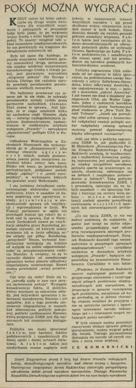 Archiwum / Komentarz nr 422 (19/1953) 08/15 Podziel się Tytuł Pokój można wygrać! Autor Czesław Komarnicki Kategoria Komentarz Artykuł z numeru 422 (19/1953) Data wydania 6 maja 1953