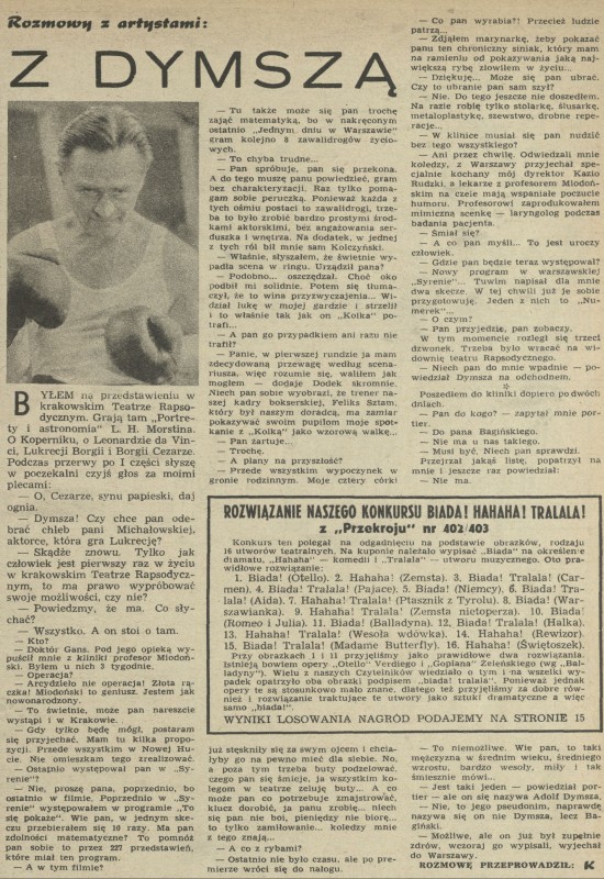 Archiwum / Rozmowy z artystami nr 410 (07/1953) 2/4 Podziel się Tytuł Z Dymszą Autor K. Rubryka Rozmowy z artystami Artykuł z numeru 410 (7/1953) Data wydania 15 lutego 1952 Tagi Teatr Rapsodyczny