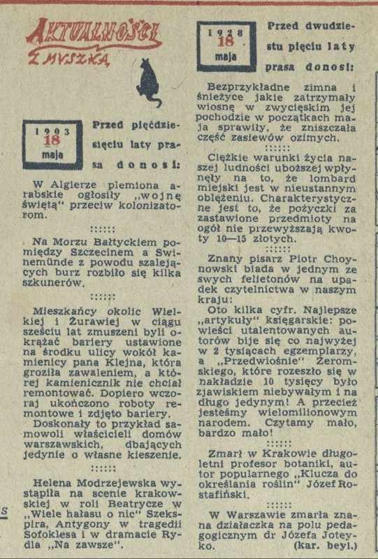 Archiwum / Aktualności z myszką nr 424 (21/1953) 15139/123969 Podziel się Tytuł Aktualności z myszką Rubryka Aktualności z myszką Artykuł z numeru 424 (21/1953) Data wydania 18 maja 1953