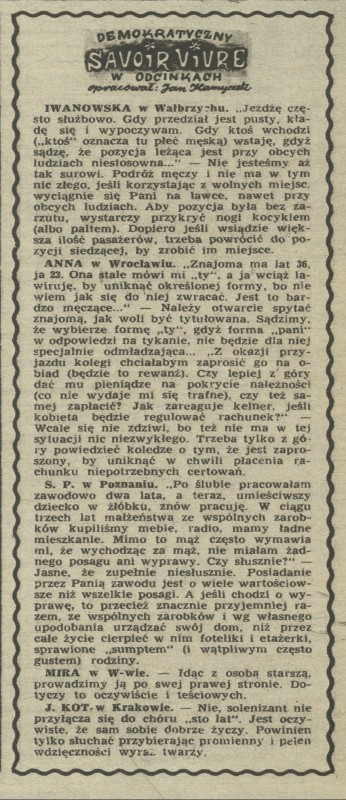 Archiwum / Demokratyczny savoir-vivre nr 411 (08/1953) 14541/123969 Podziel się Tytuł Demokratyczny savoir-vivre Autor Jan Kamyczek Rubryka Demokratyczny savoir-vivre Artykuł z numeru 411 (8/1953) Data wydania 22 lutego 1953 Tagi obyczaje kultura