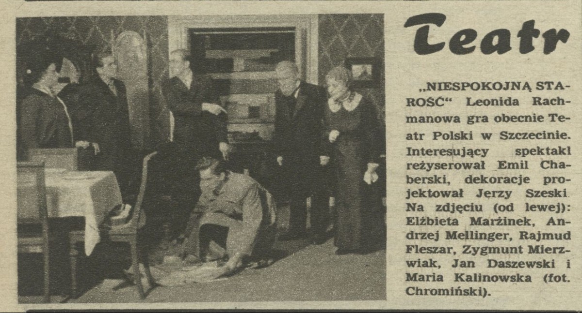 Archiwum / Teatr nr 411 (08/1953) 321/1291 Podziel się Tytuł „Niespokojna starość” Autor Witold Chromiński Rubryka Teatr Artykuł z numeru 411 (8/1953) Data wydania 22 lutego 1953 Tagi Teatr Polski w Szczecinie
