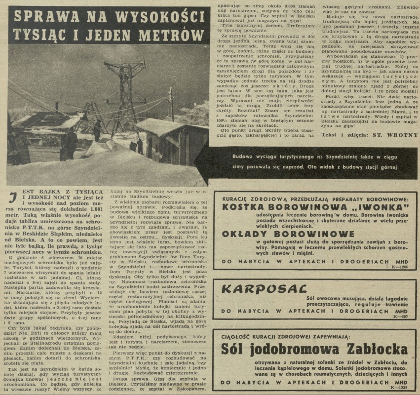 Archiwum / Artykuł nr 421 (18/1953) 14961/123969 Podziel się Tytuł Sprawa na wysokości tysiąc i jeden metrów Autor Stanisław Wrotny Kategoria Artykuł Artykuł z numeru 421 (18/1953) Data wydania 27 kwietnia 1953 Tagi góry Beskid Śląski turystyka wyciąg
