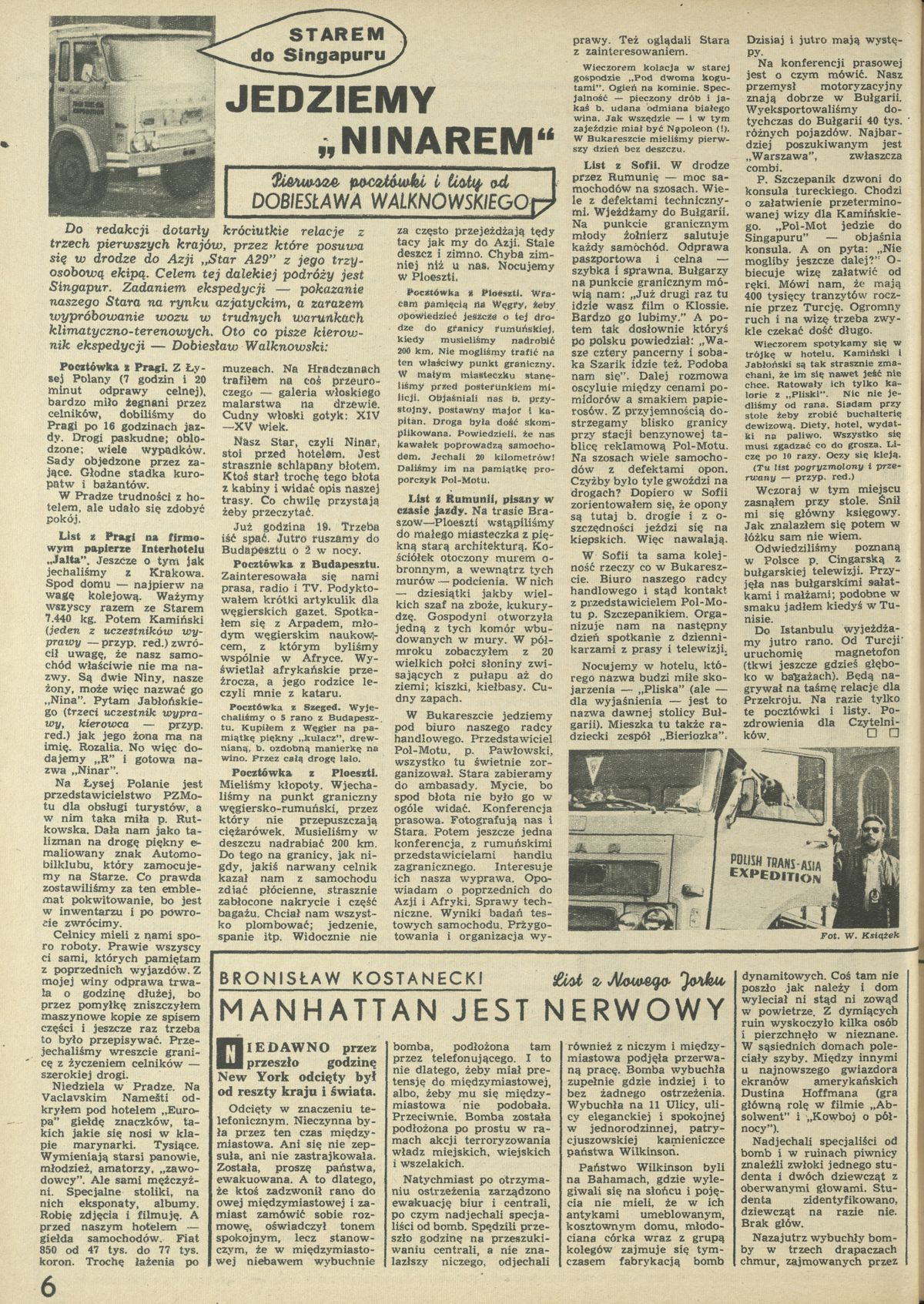 Archiwum / korespondencja własna "Przekroju" nr 1306 (16/1970) 18/596 Podziel się Tytuł Jedziemy Autor Dobiesław Walknowski Rubryka korespondencja własna "Przekroju" Artykuł z numeru 1306 (16/1970) Data wydania 19 kwietnia 1970 Tagi star singapur polishtransasiaexpedition