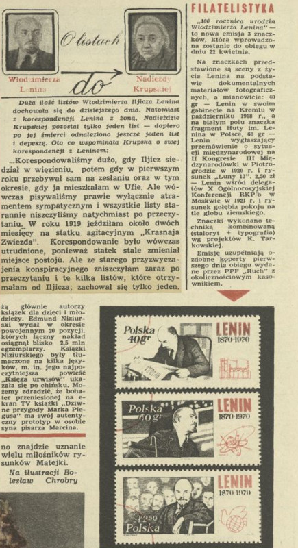 Archiwum / Filatelistyka nr 1306 (16/1970) 53450/123969 Podziel się Tytuł Filatelistyka Autor Tadeusz Grabikowski Rubryka Filatelistyka Artykuł z numeru 1306 (16/1970) Data wydania 19 kwietnia 1970 Tagi Lenin