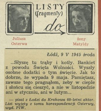 Archiwum / Listy sławnych ludzi nr 1309 (19/1970) 53559/123969 Podziel się Tytuł Listy Juliusza Ostrewy do Anny Matyldy Autor Juliusz Osterwa Rubryka Listy sławnych ludzi Artykuł z numeru 1309 (19/1970) Data wydania 10 maja 1970