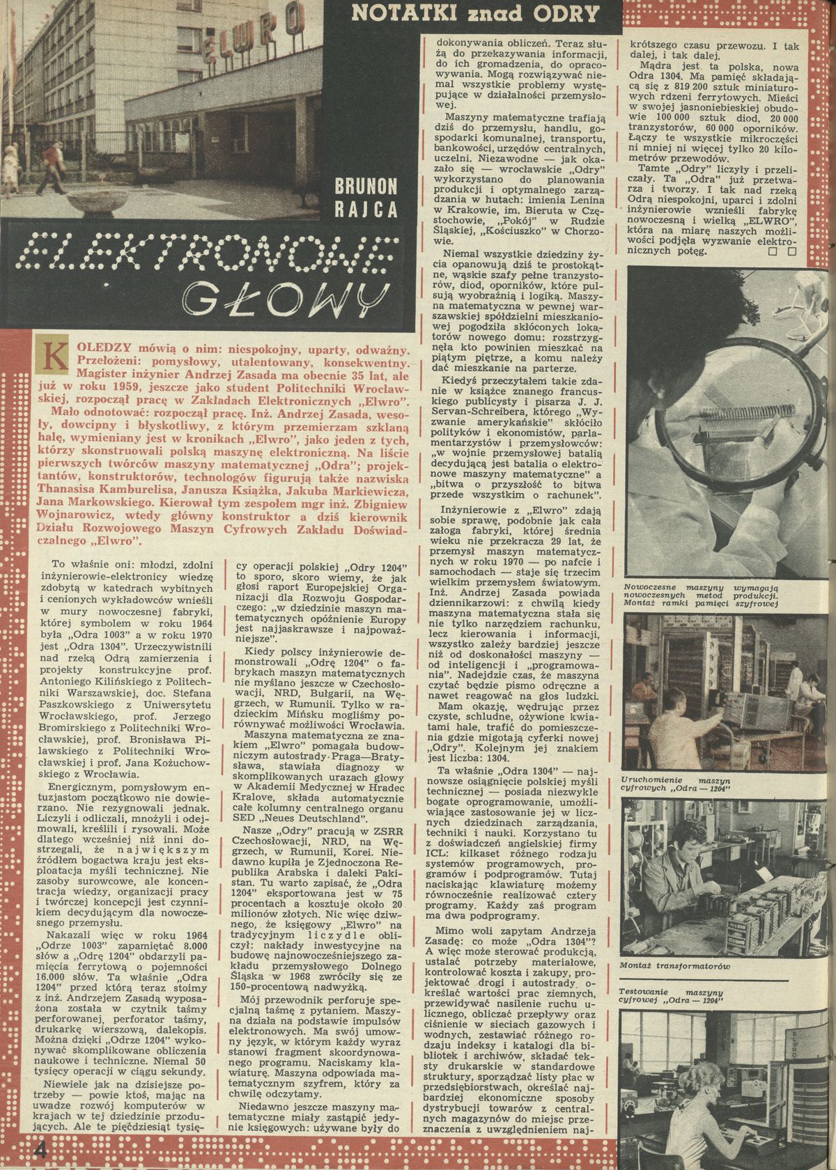 Archiwum / Rozmaitości [old] nr 1310 (20/1970) 15/857 Podziel się Tytuł Elektronowe głowy Autor Brunon Rajca Rubryka Rozmaitości [old] Artykuł z numeru 1310 (20/1970) Data wydania 17 maja 1970