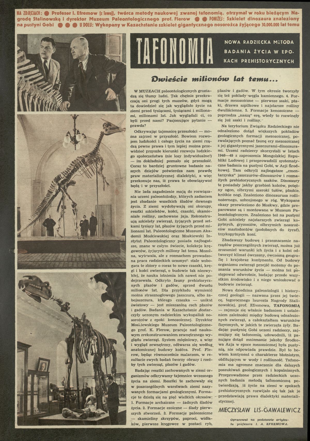Archiwum / Nauka nr 386 (35/1952) 110495/123969 Podziel się Tytuł Tafonomia - nowa radziceka metoda badania życia w epokach prehistorycznych Autor Mieczysław Lis-Gawalewicz Kategoria Nauka Artykuł z numeru 386 (35/1952) Data wydania 31 sierpnia 1952 Tagi archeologia historia Efremov Yefremov
