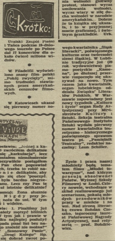 Archiwum / Krótko nr 386 (35/1952) 13443/123969 Podziel się Tytuł Krótko Rubryka Krótko Artykuł z numeru 386 (35/1952) Data wydania 31 sierpnia 1952