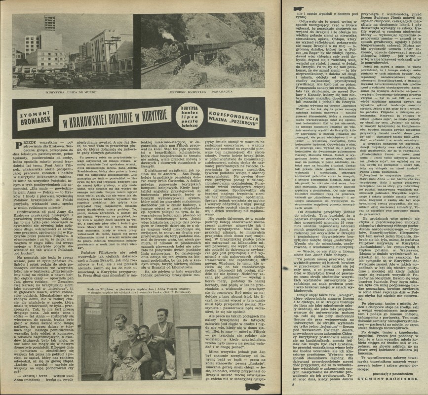 Archiwum / korespondencja własna "Przekroju" nr 591 (32/1956) 24/76 Podziel się Tytuł W krakowskiej rodzinie w Kurytybie Autor Zygmunt Broniarek Rubryka korespondencja własna "Przekroju" Artykuł z numeru 591 (32/1956) Data wydania 5 sierpnia 1956