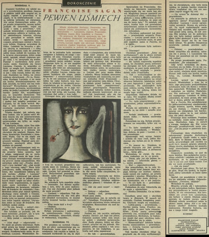Archiwum / Proza nr 599 (40/1956) 40/42 Podziel się Tytuł Pewien uśmiech Autor Francoise Sagan Anna Gostyńska Kategoria Proza Artykuł z numeru 599 (40/1956) Data wydania 30 września 1956 Tagi fragmenty powieści romans literatura francuska Szajna