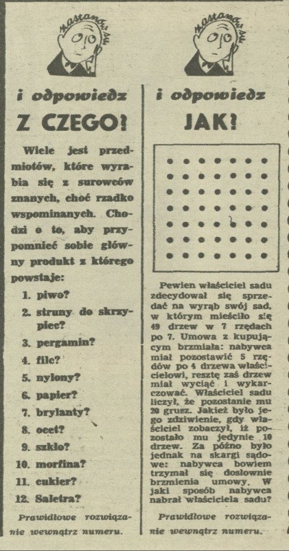 Archiwum / Zastanów się nr 493 (38/1954) 127/269 Podziel się Tytuł Z czego? Jak? Rubryka Zastanów się Artykuł z numeru 493 (38/1954) Data wydania 19 września 1954 Tagi zagadka zgadywanka
