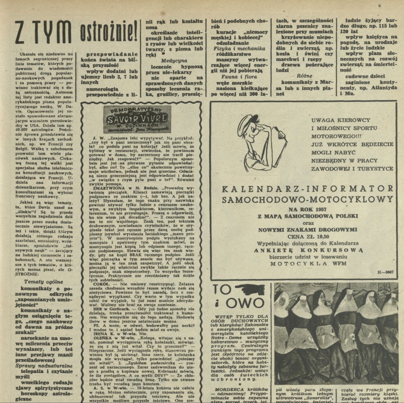 Archiwum / Różności nr 599 (40/1956) 3/3 Podziel się Tytuł Z tym ostrożnie! Kategoria Różności Artykuł z numeru 599 (40/1956) Data wydania 30 września 1956 Tagi nauka astroloiga zabobon numerologia medycyna