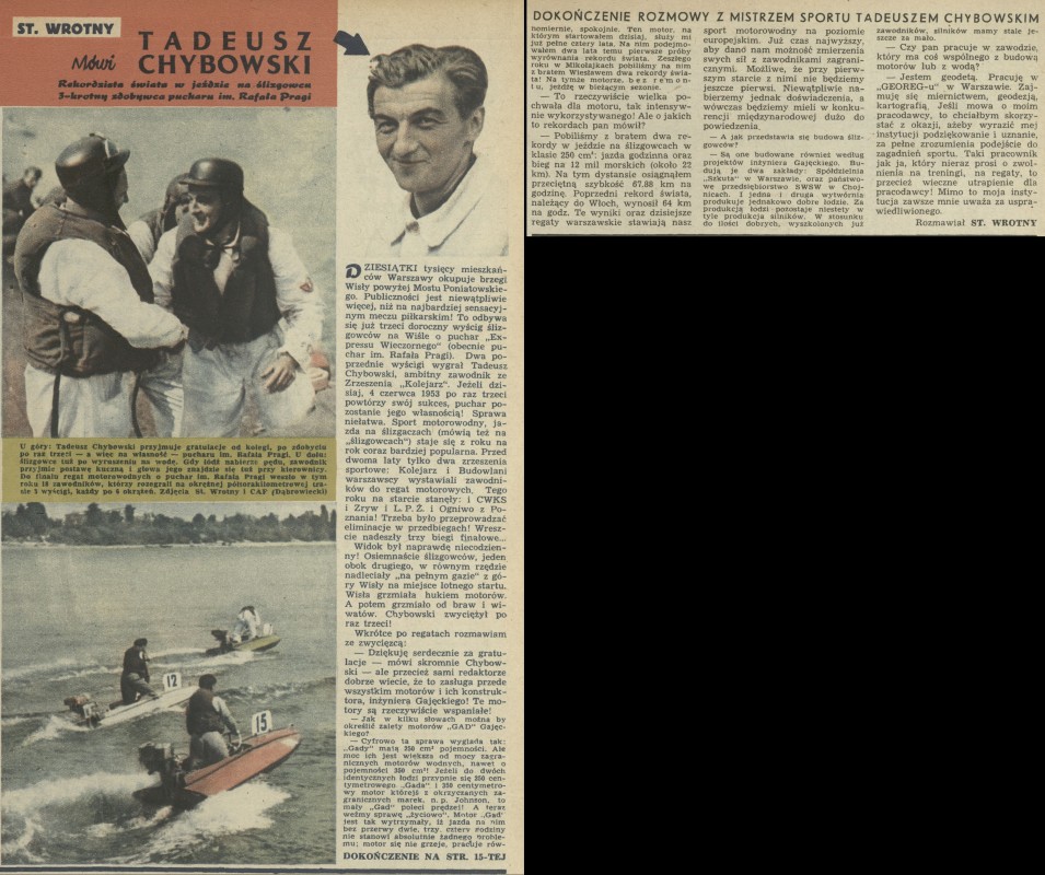 Archiwum / Sport nr 427 (24/1953) 15286/123969 Podziel się Tytuł Mówi Tadeusz Chybowski - Rekordzista świata w jeździe na ślizgowcu Autor Stanisław Wrotny Rubryka Sport Artykuł z numeru 427 (24/1953) Data wydania 14 czerwca 1953