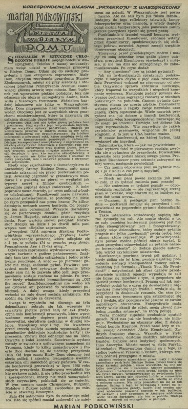 Archiwum / korespondencja własna "Przekroju" nr 600 (41/1956) 27/139 Podziel się Tytuł Wizyta w Białym Domu Autor Marian Podkowiński Rubryka korespondencja własna "Przekroju" Artykuł z numeru 600 (41/1956) Data wydania 7 października 1956 Tagi USA Ameryka prezydent Eisenhower