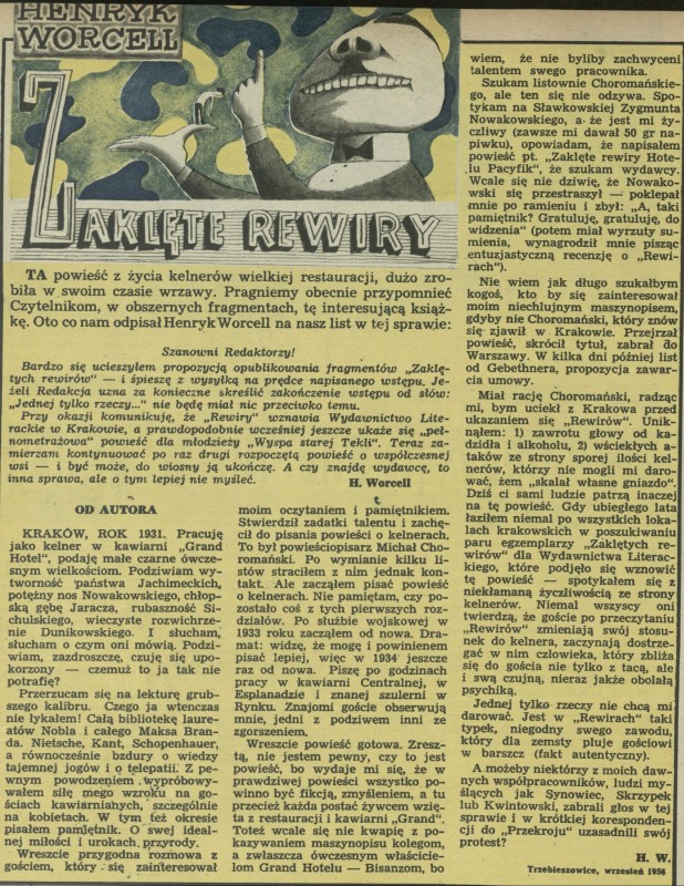 Archiwum / Esej nr 600 (41/1956) 1/1 Podziel się Tytuł Zaklęte rewiry - wstęp od Autora Autor Henryk Worcell Kategoria Esej Artykuł z numeru 600 (41/1956) Data wydania 7 października 1956 Tagi fragmenty powieści pamiętnik kelner Roman Boryczko.
