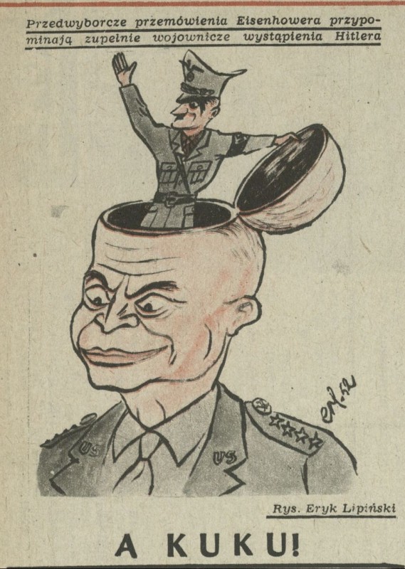 Archiwum / Rozmaitości [old] nr 389 (38/1952) 23/209 Podziel się Tytuł A kuku! Autor Eryk Lipiński Rubryka Rozmaitości [old] Artykuł z numeru 389 (38/1952) Data wydania 21 września 1952 Tagi Eisenhower Hitler karykatura polityka