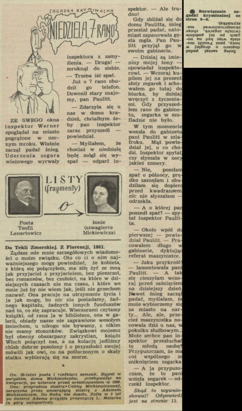 Archiwum / Zagadka kryminalna nr 1140 (07/1967) 257/2033 Podziel się Tytuł Niedziela 7 rano Rubryka Zagadka kryminalna Artykuł z numeru 1140 (7/1967) Data wydania 12 lutego 1967