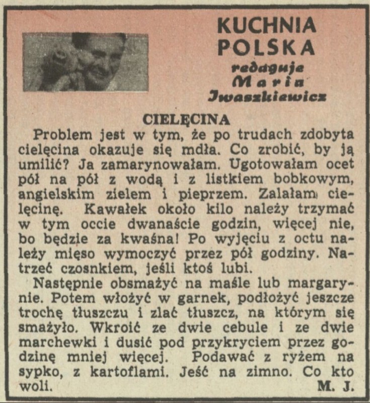 Archiwum / Kuchnia Polska nr 1140 (07/1967) 21/24 Podziel się Tytuł Kuchnia polska Autor Maria Iwaszkiewicz Rubryka Kuchnia Polska Artykuł z numeru 1140 (7/1967) Data wydania 12 lutego 1967 Tagi cielęcina