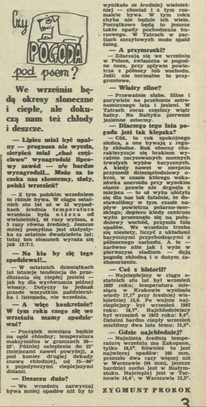 Archiwum / Czy pogoda pod psem? nr 1065 (36/1965) 86/391 Podziel się Tytuł Czy pogoda pod psem? Autor Zygmunt Prorok Rubryka Czy pogoda pod psem? Artykuł z numeru 1065 (36/1965) Data wydania 5 września 1965