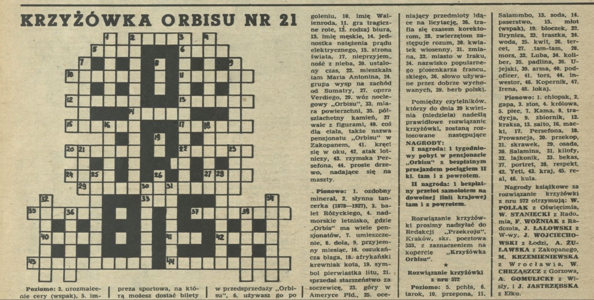 Archiwum / Krzyżówka Orbisu nr 575 (16/1956) 22221/123969 Podziel się Tytuł Krzyżówka Orbisu nr 21 Rubryka Krzyżówka Orbisu Artykuł z numeru 575 (16/1956) Data wydania 15 kwietnia 1956