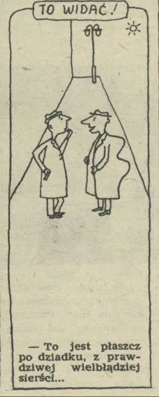 Archiwum / Historyjki obrazkowe nr 450 (47/1953) 2124/2346 Podziel się Tytuł To widać! Autor Marian Eile Kategoria Historyjki obrazkowe Artykuł z numeru 450 (47/1953) Data wydania 22 listopada 1953 Tagi żart rysunkowy płaszcz wielbłądzia sierść garb