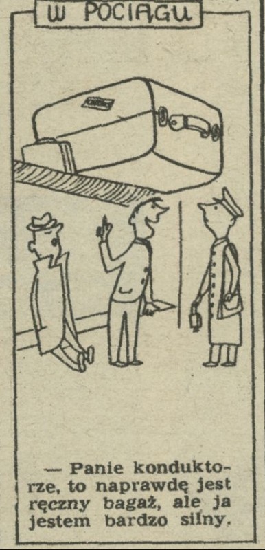 Archiwum / Historyjki obrazkowe nr 451 (48/1953) 107559/123969 Podziel się Tytuł W pociągu Autor Marian Eile Kategoria Historyjki obrazkowe Artykuł z numeru 451 (48/1953) Data wydania 29 listopada 1953 Tagi żart rysunkowy konduktor