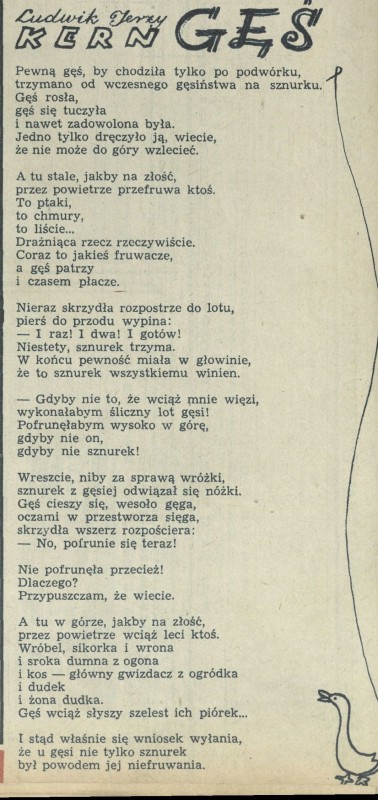 Archiwum / Rozmaitości [old] nr 443 (40/1953) 132/459 Podziel się Tytuł Gęś Autor Ludwik Jerzy Kern Rubryka Rozmaitości [old] Artykuł z numeru 443 (40/1953) Data wydania 4 października 1953