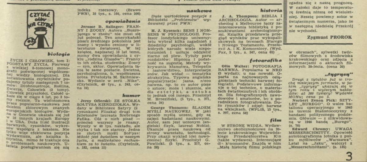Archiwum / Czytać albo nie czytać? nr 1094 (13/1966) 4/8 Podziel się Tytuł Czytać albo nie czytać Rubryka Czytać albo nie czytać? Artykuł z numeru 1094 (13/1966) Data wydania 27 marca 1966 Tagi Życie człowieka