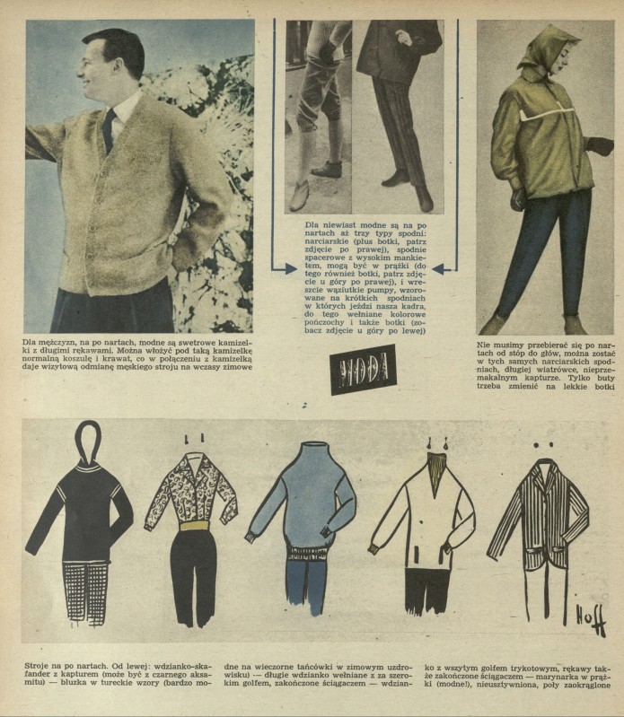 Archiwum / Moda nr 566 (07/1956) 13/51 Podziel się Tytuł Stroje na po nartach Autor Barbara Hoff Rubryka Moda Artykuł z numeru 566 (7/1956) Data wydania 12 lutego 1956 Tagi moda damska moda męska moda zimowa golfy spodnie kamizelki