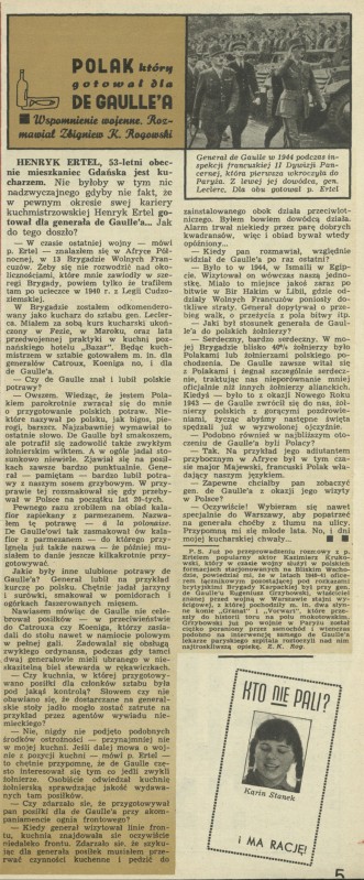 Archiwum / Wywiad nr 1156 (23/1967) 16/20 Podziel się Tytuł Polak, który gotował dla De Gaulle'a Autor Zbigniew K. Rogowski Kategoria Wywiad Artykuł z numeru 1156 (23/1967) Data wydania 4 czerwca 1967 Tagi Henryk Ertel