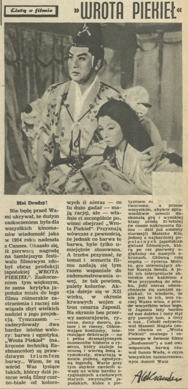 Archiwum / Listy o filmie nr 612 (01/1957) 1/3 Podziel się Tytuł „Wrota piekieł” Autor Aleksander Rubryka Listy o filmie Artykuł z numeru 612 (1/1957) Data wydania 1 stycznia 1957 Tagi kinematografia japońska Kinugasa jidai-geki