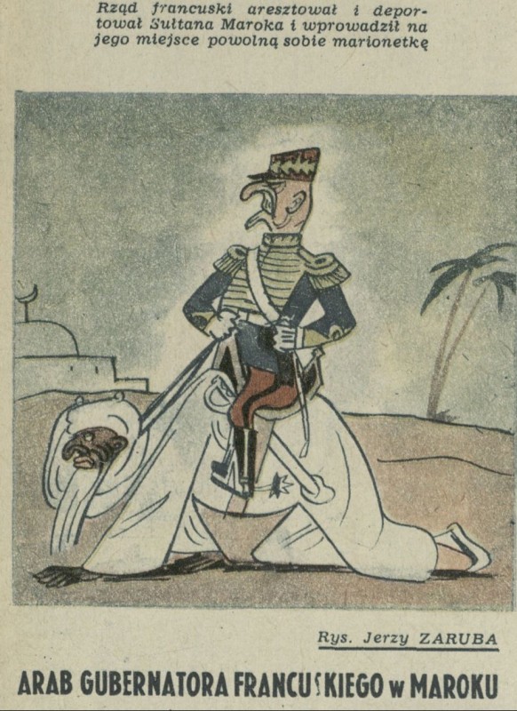 Archiwum / Rozmaitości [old] nr 439 (36/1953) 21/51 Podziel się Tytuł Arab gubernatora francuskiego w Maroku Autor Jerzy Zaruba Rubryka Rozmaitości [old] Artykuł z numeru 439 (36/1953) Data wydania 6 września 1953 Tagi propaganda karykatura satyra