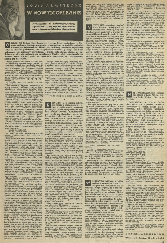 Archiwum / Opowiadanie nr 612 (01/1957) 74/3043 Podziel się Tytuł Louis Amstrong w Nowym Orleanie Autor Lucjan Kydryński Kategoria Opowiadanie Artykuł z numeru 612 (1/1957) Data wydania 1 stycznia 1957 Tagi "My life in New Orleans" autobiografia jazz
