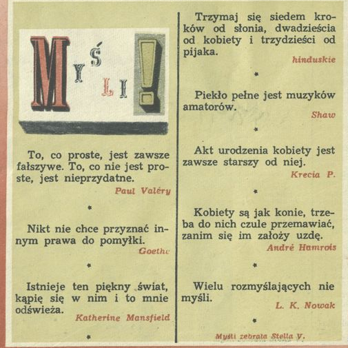 Archiwum / Myśli nr 1322 (32/1970) 54034/123969 Podziel się Tytuł Myśli Autor Stella Varcaby Rubryka Myśli Artykuł z numeru 1322 (32/1970) Data wydania 9 sierpnia 1970 Tagi cytaty myśli aforyzmy