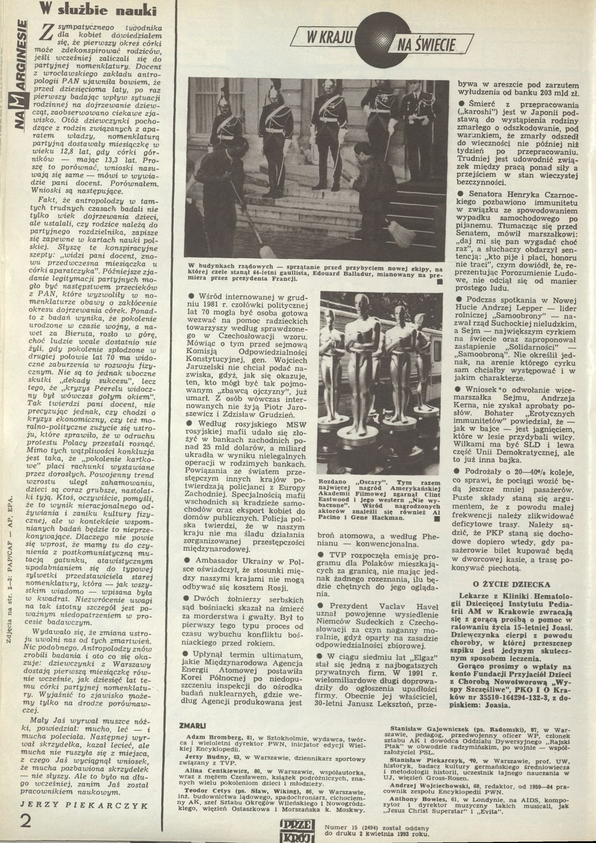 Archiwum / Różności nr 2494 (15/1993) 20/65 Podziel się Tytuł W kraju, na świecie Kategoria Różności Artykuł z numeru 2494 (15/1993) Data wydania 11 kwietnia 1993 Tagi rozdanie Oscarów Vaclav Havel różności
