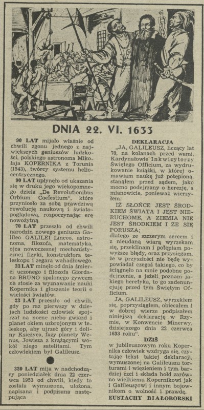 Archiwum / Różności nr 428 (25/1953) 15314/123969 Podziel się Tytuł Dnia 22. VI. 1633 Autor Eustachy Białoborski Kategoria Różności Artykuł z numeru 428 (25/1953) Data wydania 21 czerwca 1953 Tagi Deklaracja Galileusza