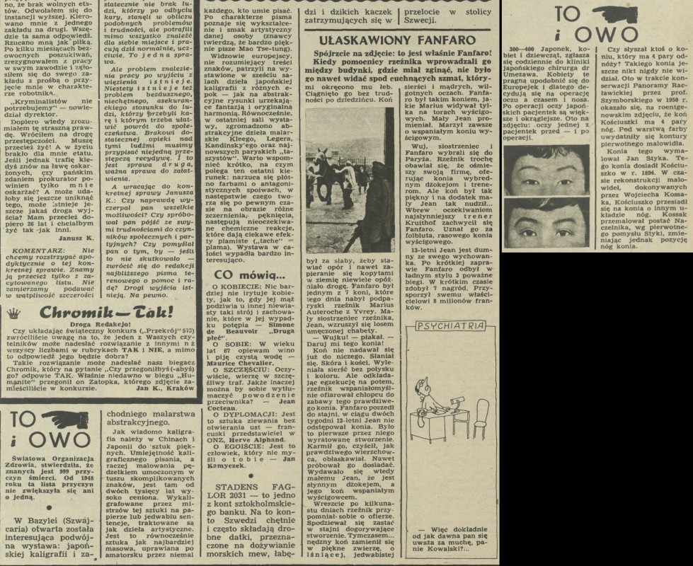 Archiwum / To i owo nr 574 (15/1956) 22170/123969 Podziel się Tytuł To i owo Rubryka To i owo Artykuł z numeru 574 (15/1956) Data wydania 8 kwietnia 1956 Tagi Japonki Japonia oczy koń