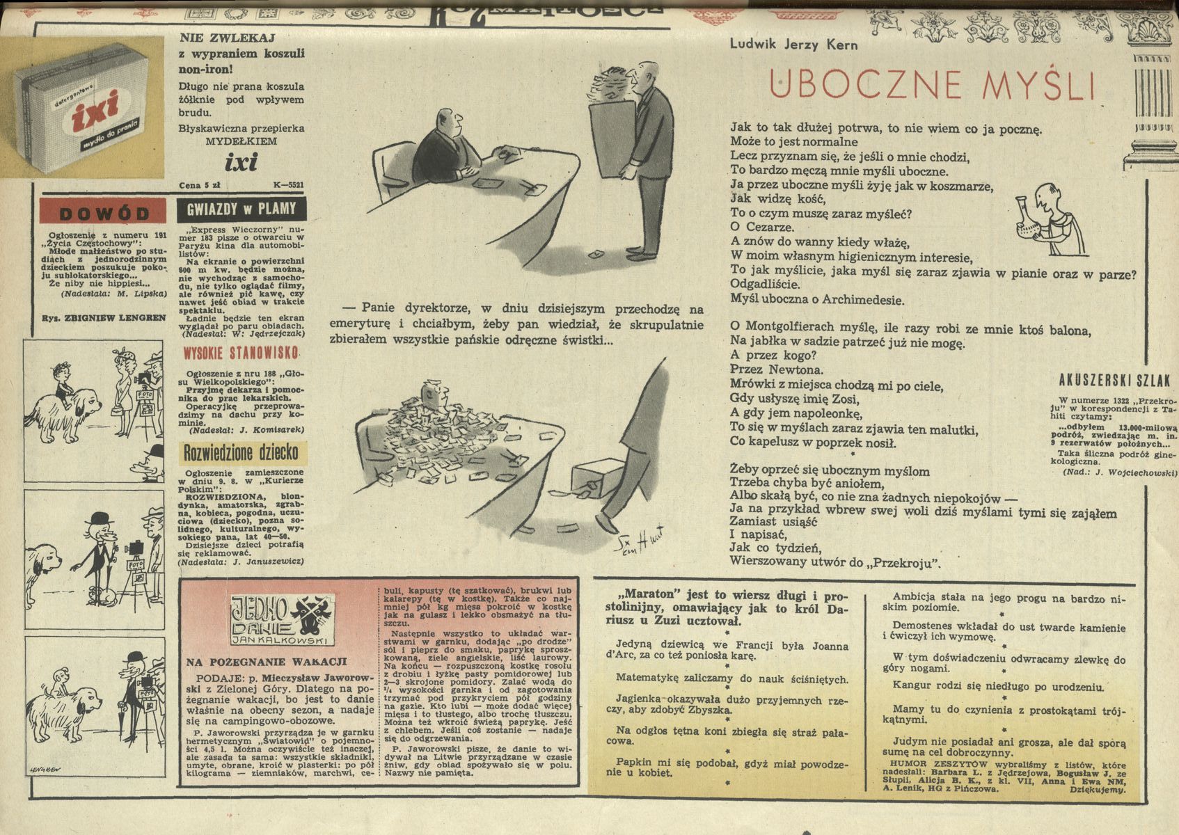 Archiwum / Myśli nr 1325 (35/1970) 36/508 Podziel się Tytuł Uboczne myśli Autor Ludwik Jerzy Kern Rubryka Myśli Artykuł z numeru 1325 (35/1970) Data wydania 30 sierpnia 1970