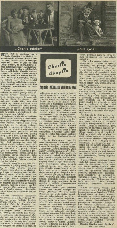 Archiwum / Film nr 489 (34/1954) 16/58 Podziel się Tytuł Charlie Chaplin Autor Michalina Wilkoszowa Rubryka Film Artykuł z numeru 489 (34/1954) Data wydania 22 sierpnia 1954 Tagi komedia komik aktor "Charlie ucieka" "Psie życie"