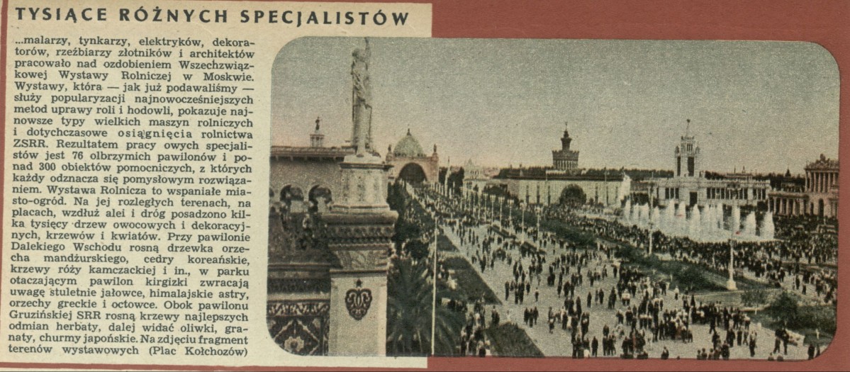 Archiwum / Relacja nr 489 (34/1954) 34/55 Podziel się Tytuł Tysiące różnych specjalistów Kategoria Relacja Artykuł z numeru 489 (34/1954) Data wydania 22 sierpnia 1954 Tagi Wszechwiązkowa Wystawa Rolnicza w Moskwie Plac Kołchozów rolnictwo