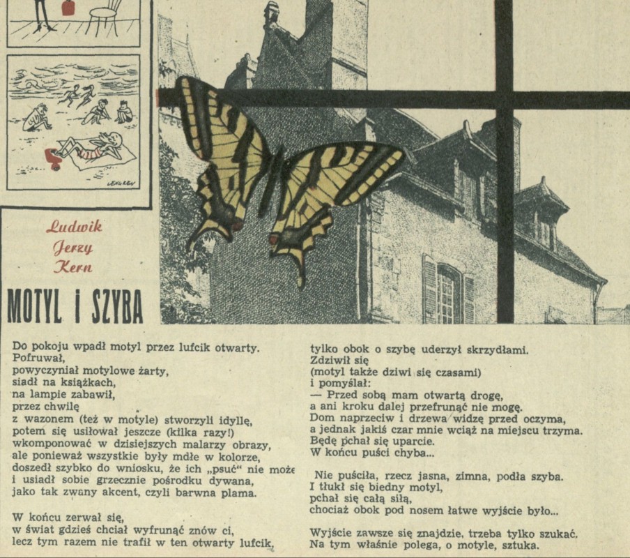 Archiwum / Rozmaitości [old] nr 489 (34/1954) 2/3 Podziel się Tytuł Motyl i szyba Autor Ludwik Jerzy Kern Rubryka Rozmaitości [old] Artykuł z numeru 489 (34/1954) Data wydania 22 sierpnia 1954